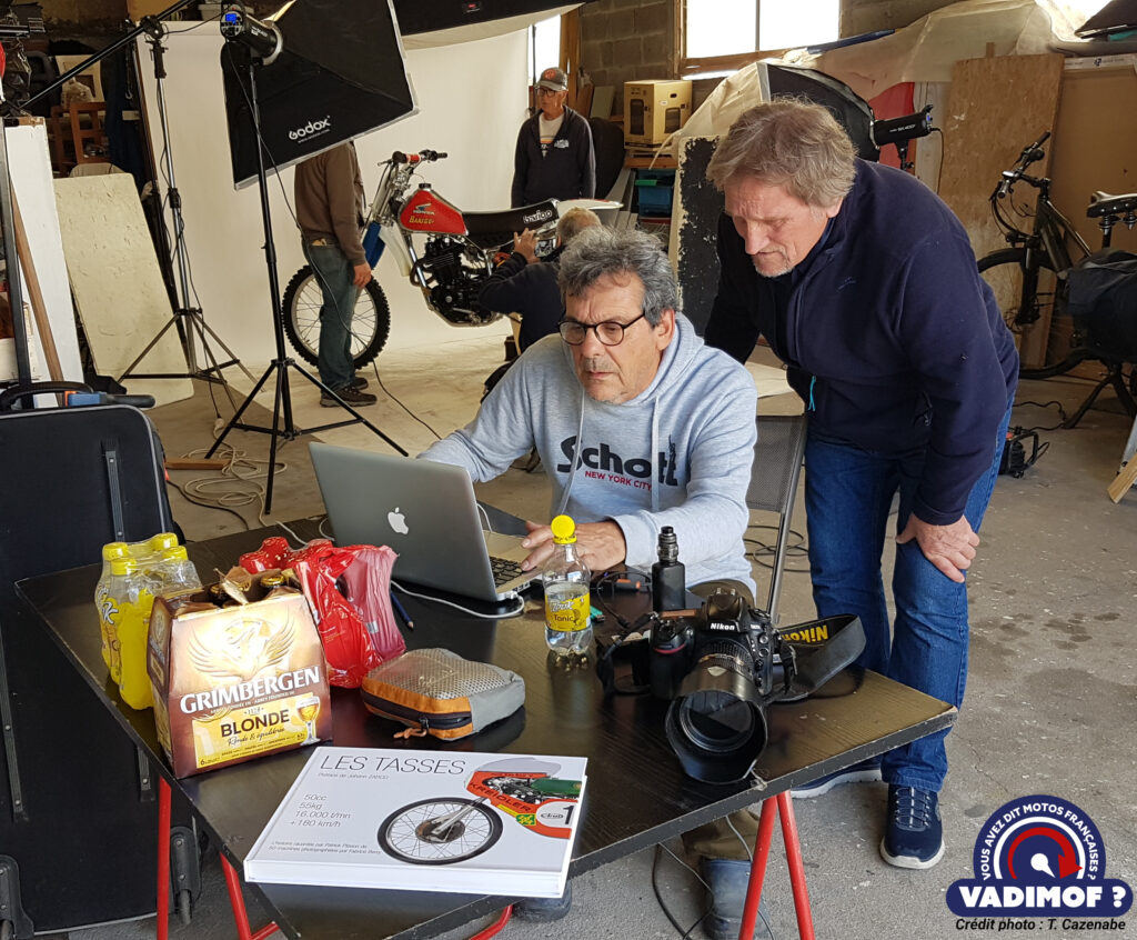 A cette occasion, un livre de photos « studio » sera publié par Fabrice Berry. Ce photographe, bien connu du milieu moto (a travaillé entre autre pour Moto Revue, Motos et Motards etc. Motos Heroes actuellement), récidive après le succès du livre « Les Tasses » de Patrick Plisson (ci-dessous sur le bureau) dont il avait assuré l’iconographie.
